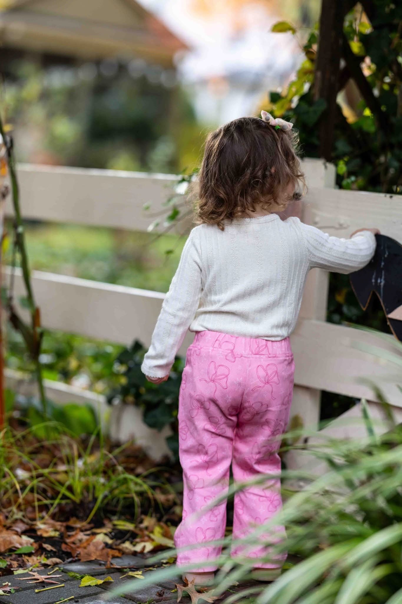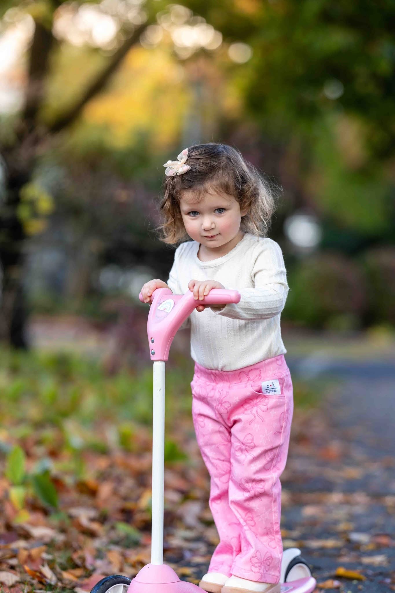 These adorable pink bell bottom pants are covered in dainty bows with subtle accents. These are perfect for twirling, playing or dressing up your littles in sweet style. Pair with a simple tee or matching top for the cutest girly look!