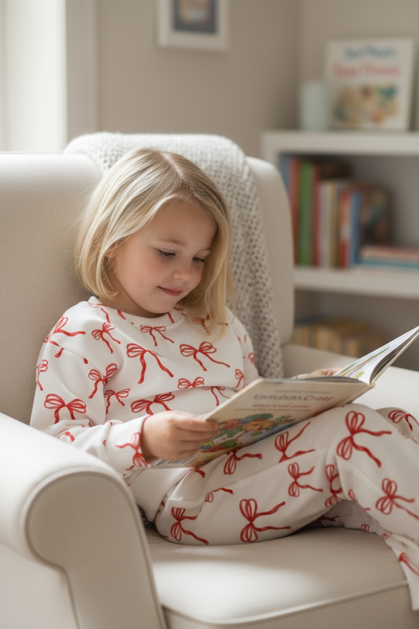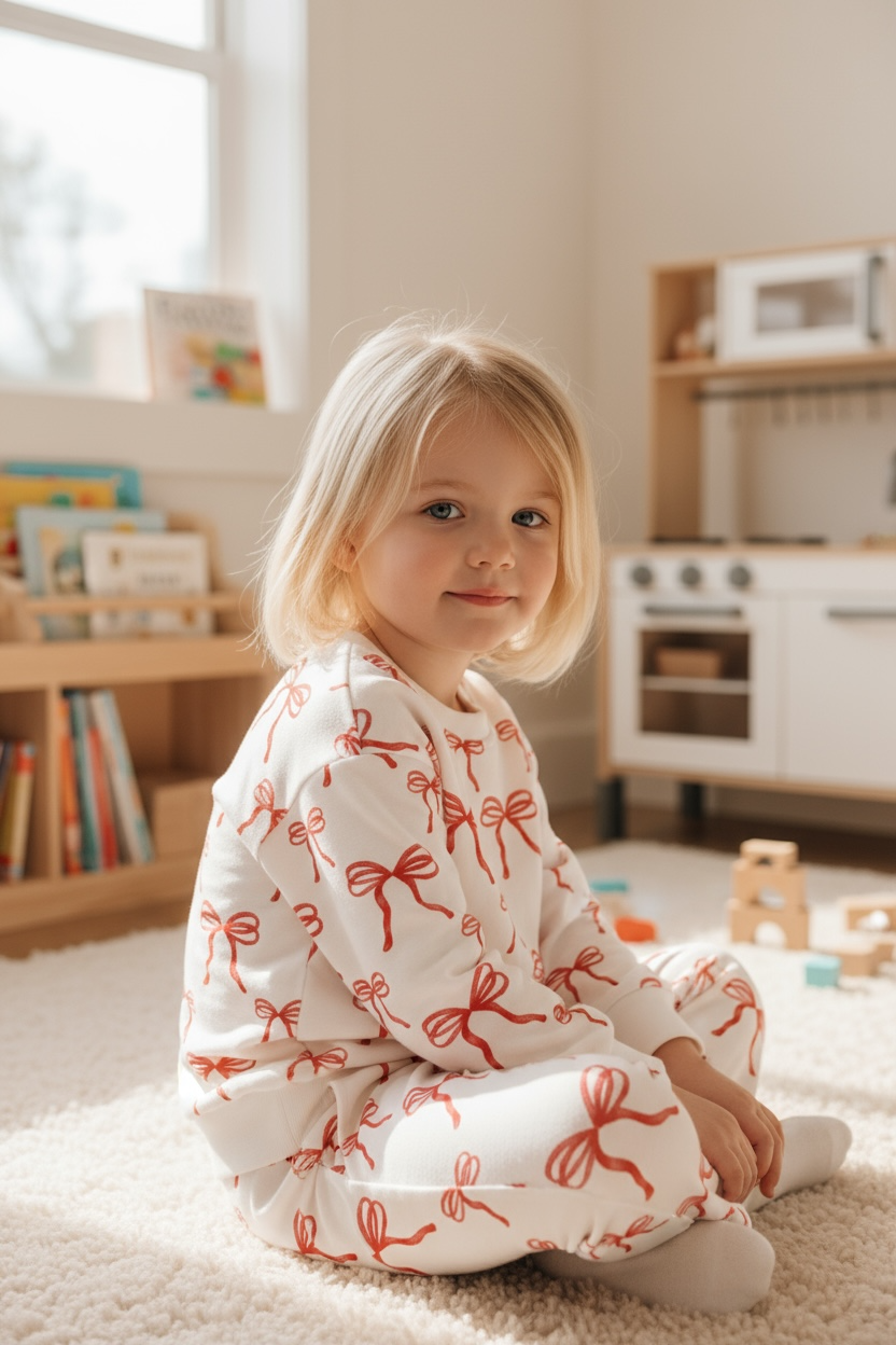 Cozy meets cute in this darling bow set! The soft, comfy fabric makes it perfect for all day wear, while the bold red bow details add the sweetest touch of style. Whether lounging, playing or heading out for fun, this set is an instant favorite for looking cute and feeling comfy at the same time.